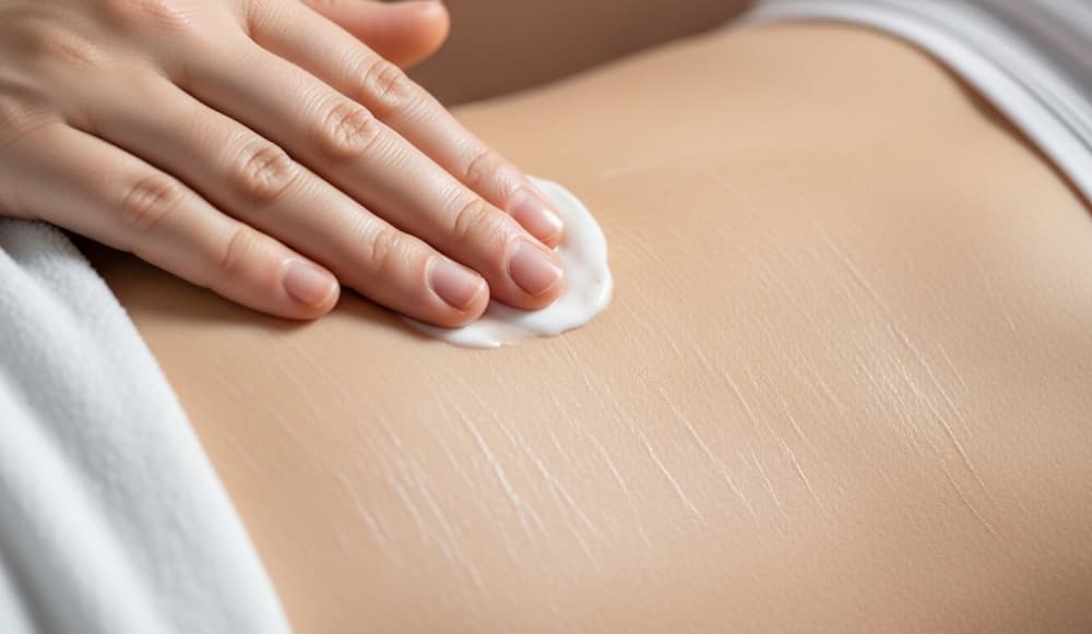 Desde el inicio: la hidratación constante es fundamental. Usa cremas o aceites ricos en manteca de karité, aceites vegetales (almendras, rosa mosqueta, oliva, argán, escualano), vitamina E y ácido hialurónico. Momento de aplicación: aplica generosamente dos veces al día, con un suave masaje, especialmente en zonas propensas (abdomen, senos, muslos, glúteos).